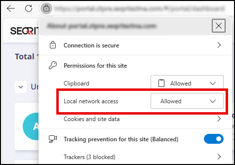 If you are using version 143 or above, Edge may display a pop-up requesting Local Area Network (LAN) access,