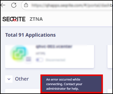 If you see an error on the user portal immediately after logging in (Refer to below two images), it may be caused by Edge blocking Local Area Network (LAN) access. This behavior is common in Edge version 143 or later, where the browser may require explicit permission to allow local network communication.