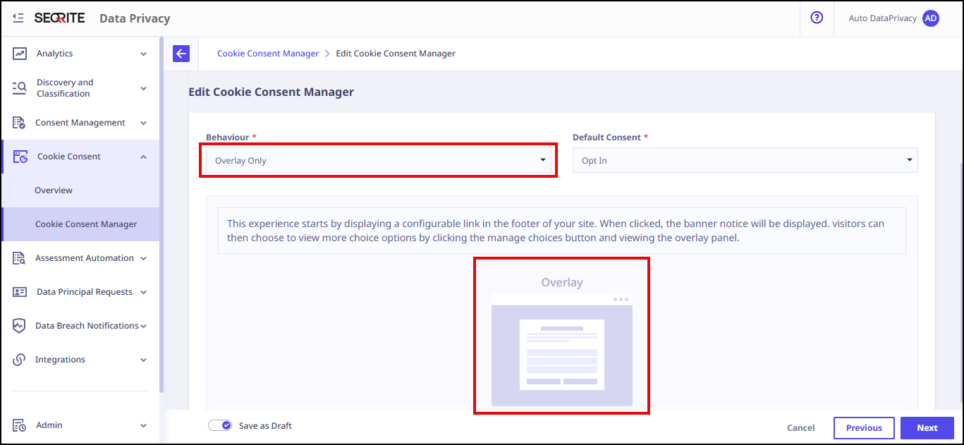 - Overlay Only: Only Cookie Consent overlay is displayed.