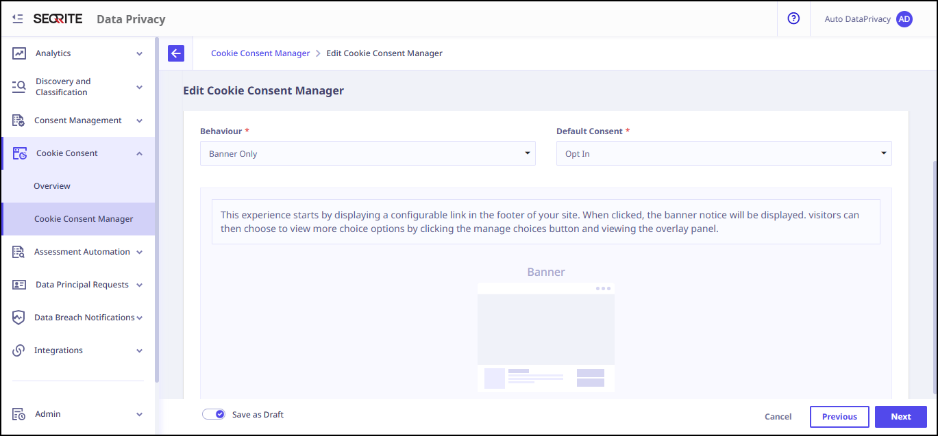 - Banner Only: Only Cookie Consent Banner is displayed.