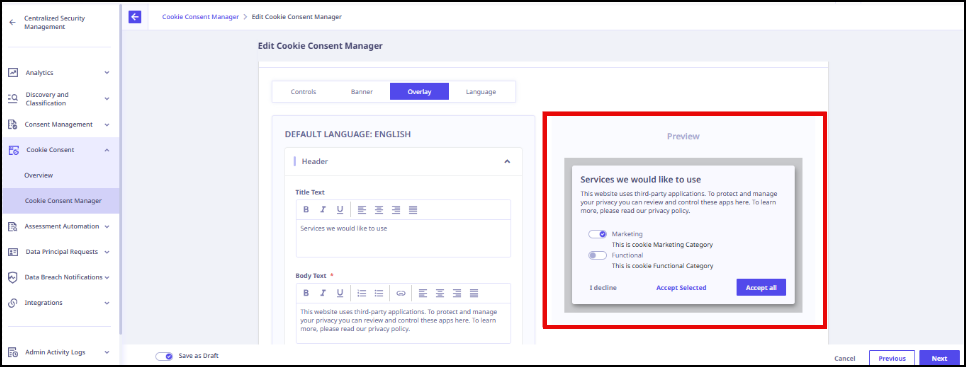 - Use the Preview option to review the consent experience.