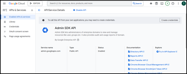Adding scope and APIs for Google Cloud and Google Admin Console