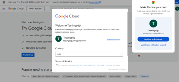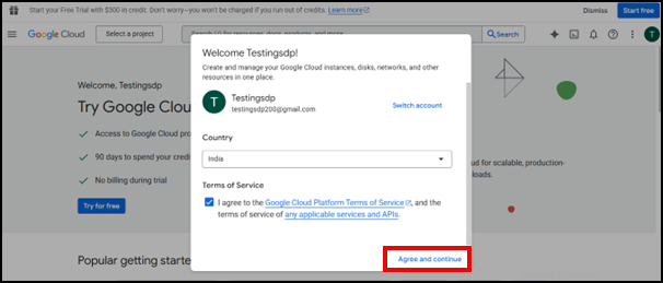 - Verify using a phone number, accept the terms and condition from browser and click Agree and continue.