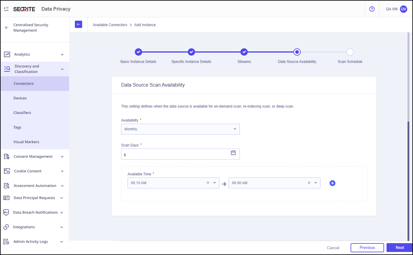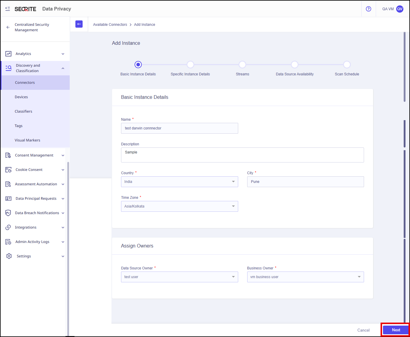 1. In the left navigation pane, click Discovery and Classification and then click Connectors.