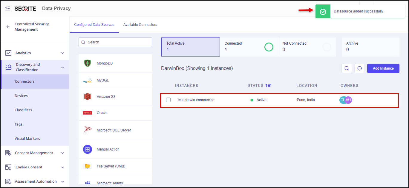 3. Select DarwinBox from the configured data source list, and then click Add Instance.