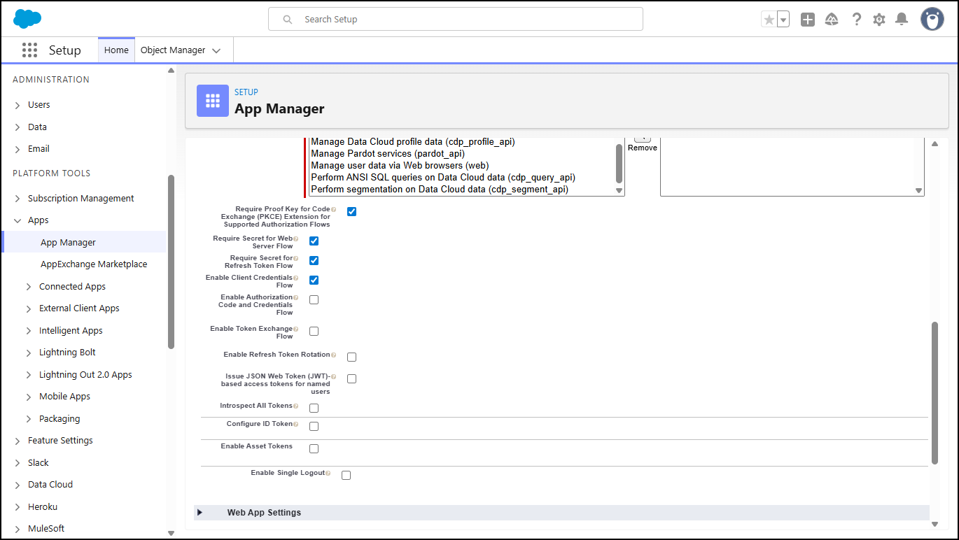- Enable the Client Credentials Flow in the OAuth Settings.