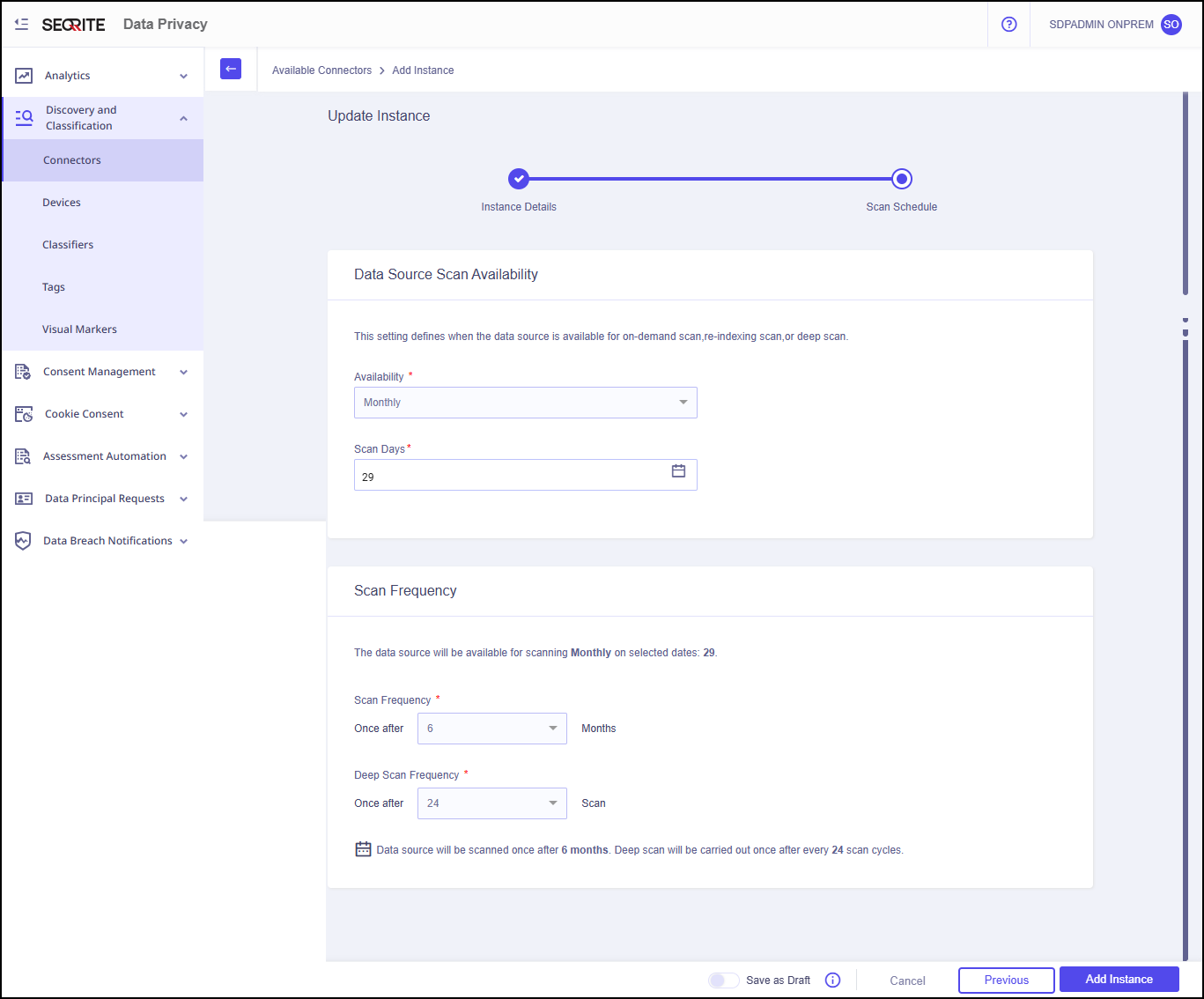 2. Add Connected App as an Instance in Seqrite Data Privacy Admin Console