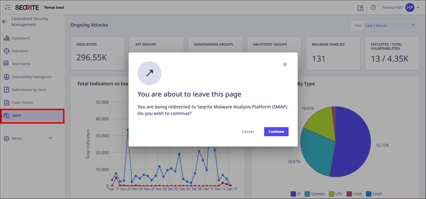 This integration allows you to analyze suspicious files within SMAP and securely share any detected malware or ransomware with the SMAP community. On clicking SMAP tab, you will be redirected to Seqrite Malware Analysis Platform where you can perform static and behavior analysis of any suspicious file in an isolated environment.