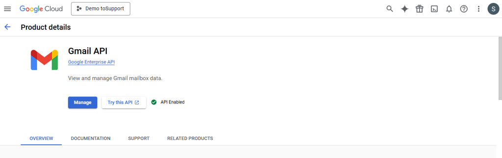 - Enable Gmail API service.