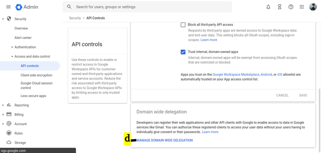 - Enable domain-wide delegation