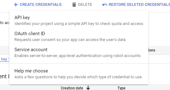 - On the left, click Credentials. Click New Credentials, then select OAuth client ID.