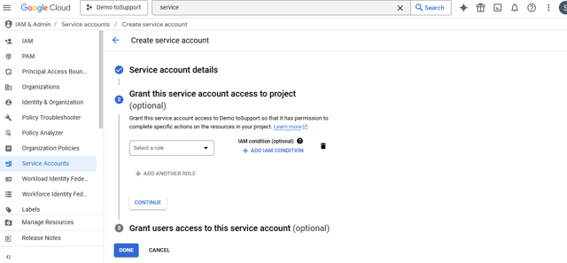 - Provide Service account name.