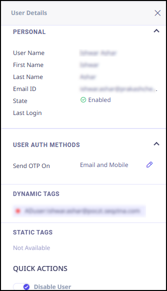 Dynamic Tags Dynamic tags assigned to the user. (Only visible for an external IdP).