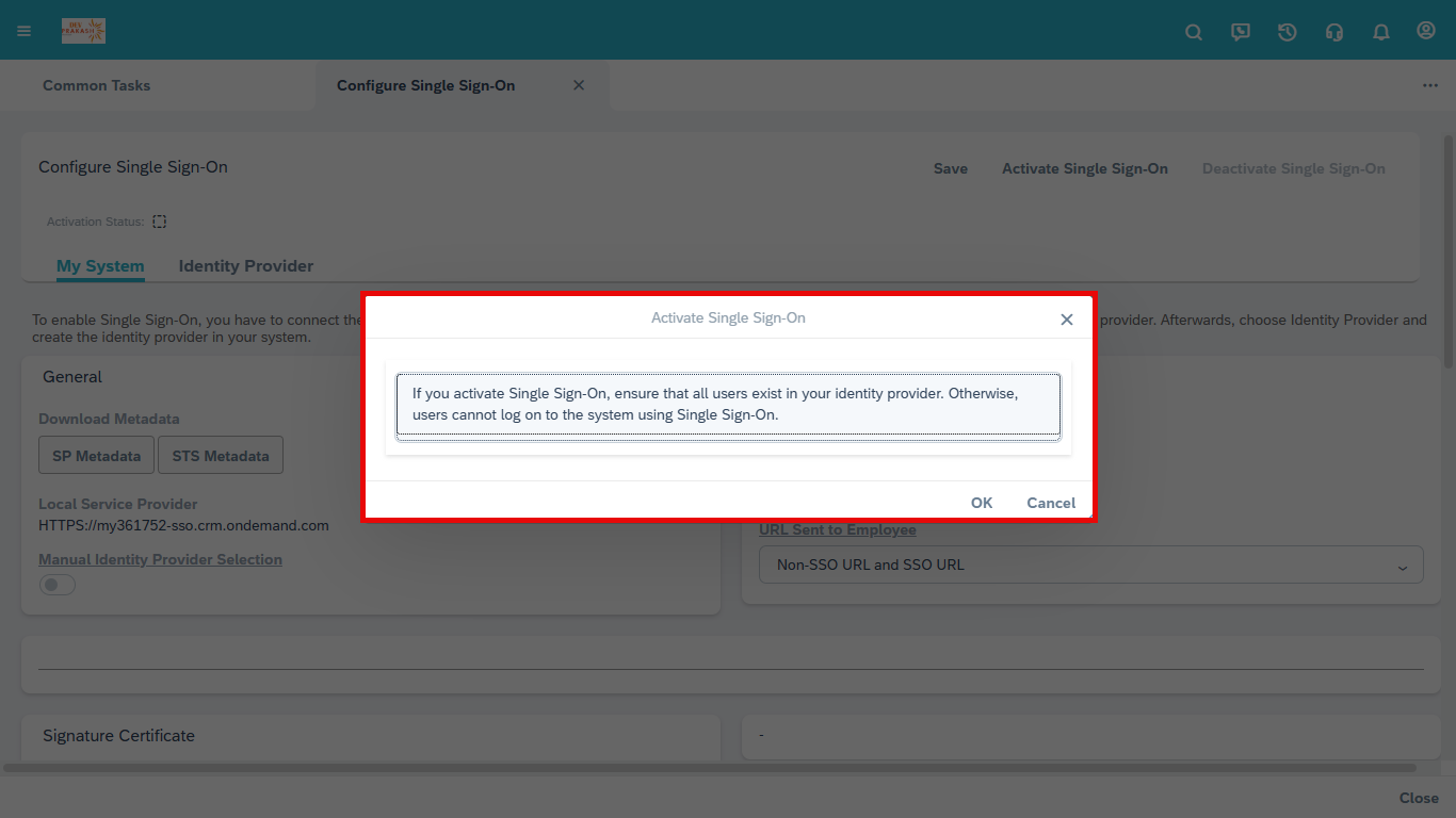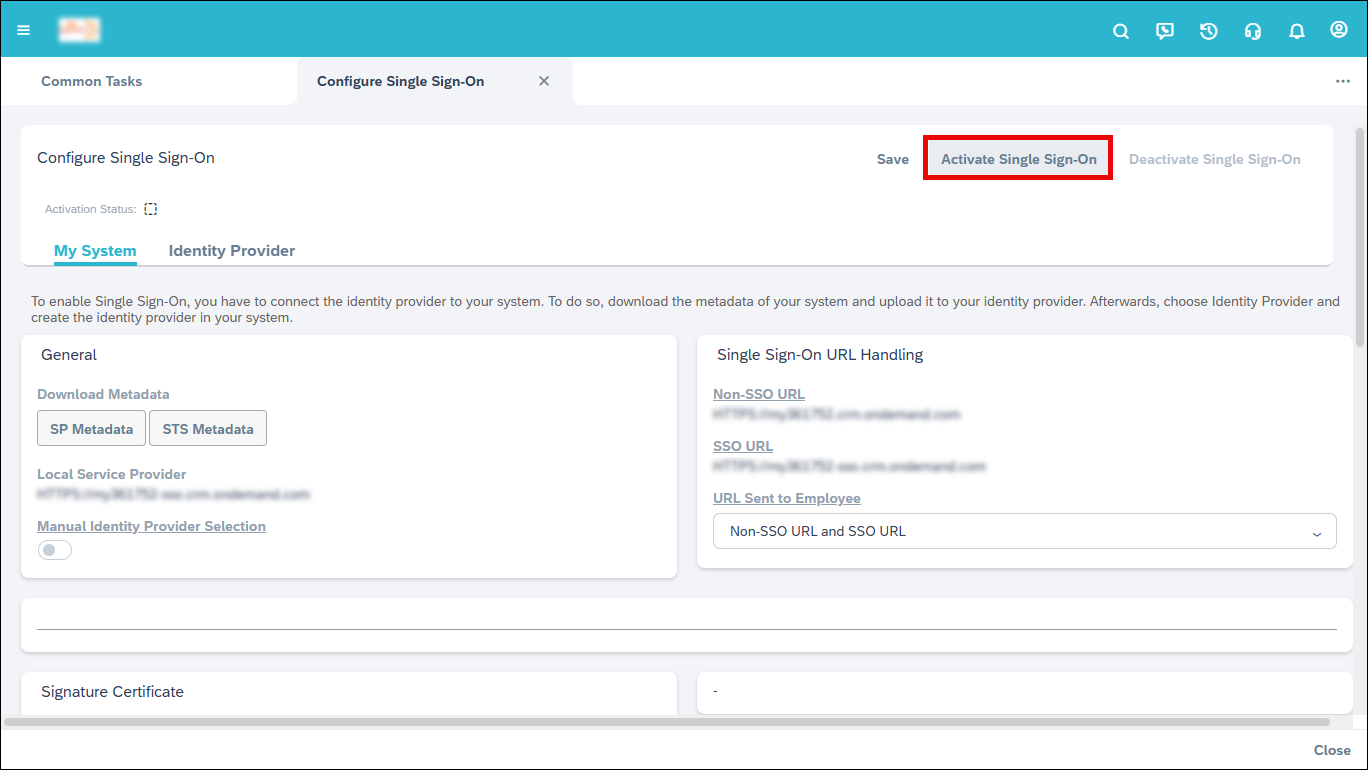 6. On The Configure Single Sign on tab click Activate Single Sign-On .