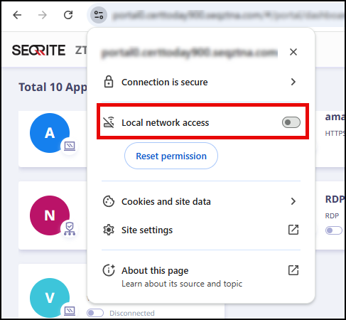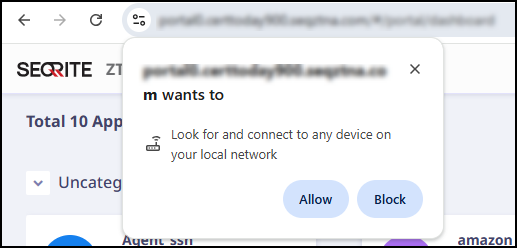 If you’re using version 142.x or higher, Chrome may display a pop-up requesting Local Area Network (LAN) access.