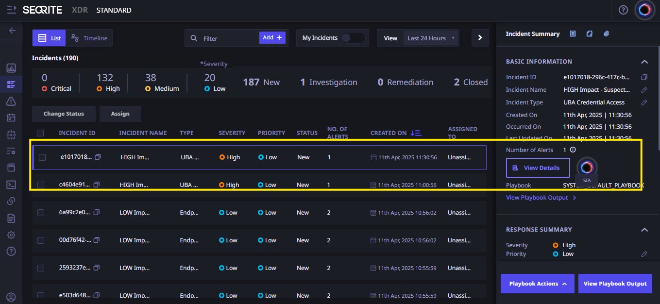 Seqrite Intelligent Assistant (SIA) can be accessed directly from the XDR console while reviewing incidents. Follow these steps to get started: